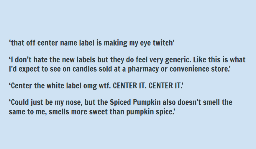 I did not have to wait long. The result of the research and brand work was a new look intended to make Yankee Candle more appealing to younger consumers. Yankee Candle redditors picked up on it early:
